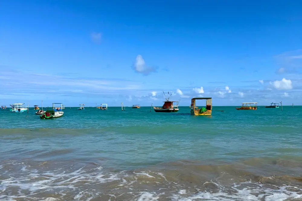 Embarcamos em jangadas conduzidas por locais, deslizando suavemente até as piscinas naturais que surgem em meio ao oceano quando a maré baixa. As águas cristalinas revelam um verdadeiro aquário natural, onde peixes coloridos e formações de corais compõem um espetáculo único.