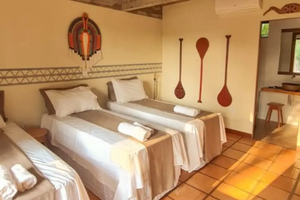 A nossa casa em Alter do Chão está localizada a poucos passos da Ilha do Amor, só 600 metros do cartão-postal mais famoso da região! Um cantinho silencioso, rodeado por jardins cheios de vida e uma atmosfera que te faz sentir em casa. Os quartos são antialérgicos, confortáveis, com ar-condicionado, Wi-Fi, TV de 43", banheiro amplo e produtos de banho de cortesia. E o café da manhã? Um espetáculo à parte. Mesa farta, frutas frescas da região, sucos naturais, sabores que representam a Amazônia e aquela sensação gostosa de começar o dia devagarzinho, do jeito que Alter pede.