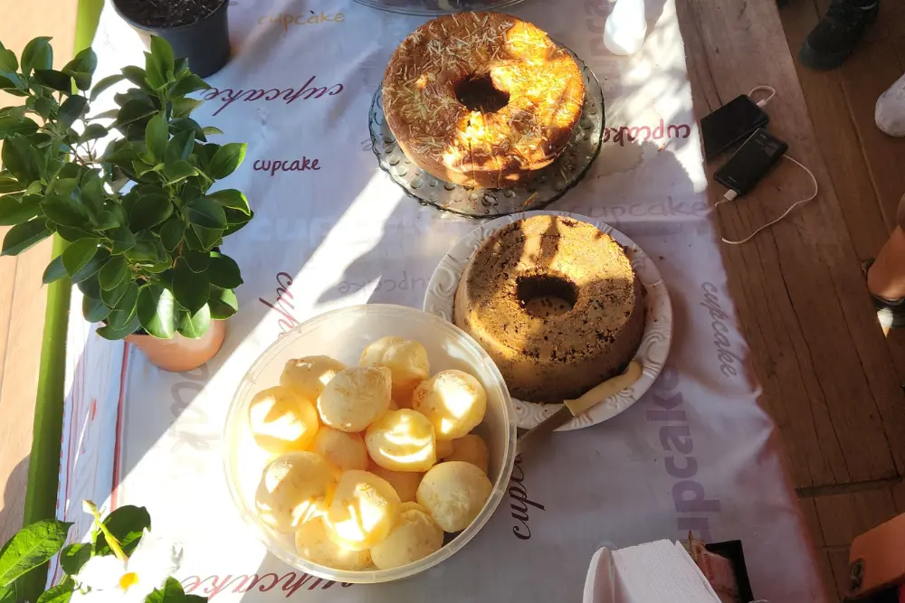 Vamos começar o nosso dia com um delicioso café da manhã na pousada, com direito a pão de queijo, bolo e cafezinho mineiro! Preparados para mais um dia de aventura?