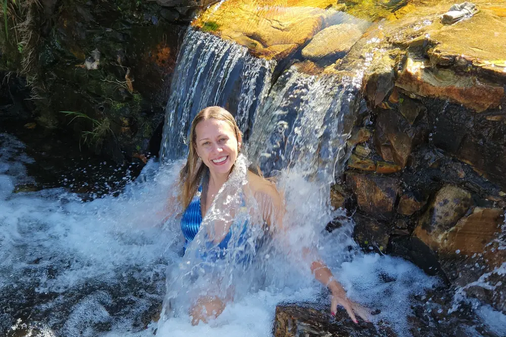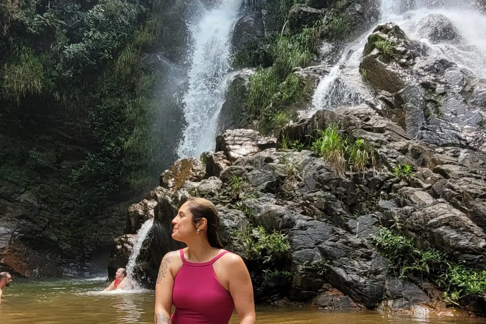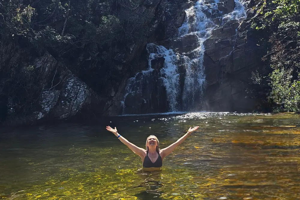 Depois, é hora de mergulhar nas cachoeiras mais cristalinas de Minas Gerais! Vamos seguir para o Complexo do Ouro, uma atração fascinante composta por três cachoeiras deslumbrantes. Cada uma delas possui características únicas, perfeita para contemplação, mergulho e relaxamento! A trilha completa é de aproximadamente 1,5 km ida e volta, nível iniciante e que vale completamente a pena quando contemplamos esses visuais inesquecíveis!