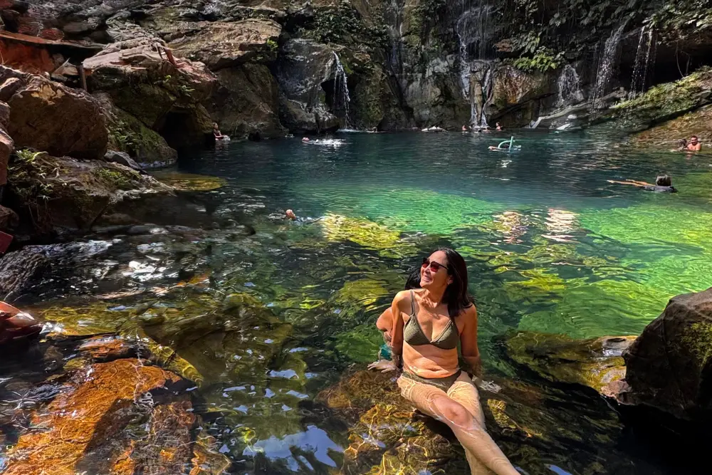 Seguimos para o Complexo Poço Azul, com suas cachoeiras e poços de águas cristalinas, um verdadeiro espetáculo natural!