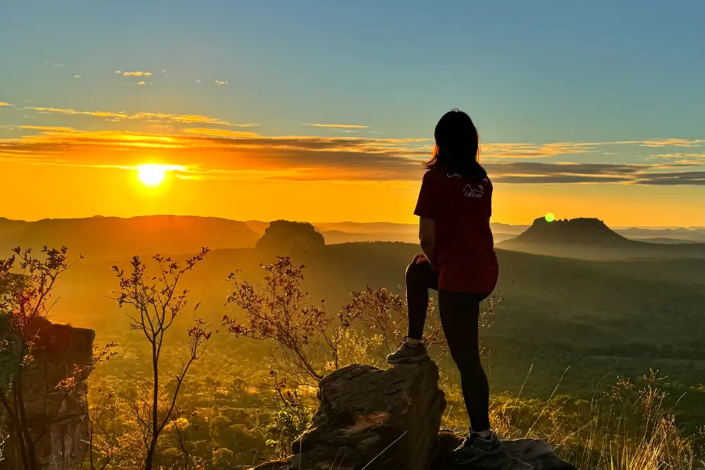 Encerramos a viagem com uma experiência mágica: um trekking ao amanhecer para ver o sol nascer entre o cerrado e a caatinga, um espetáculo que renova a alma!