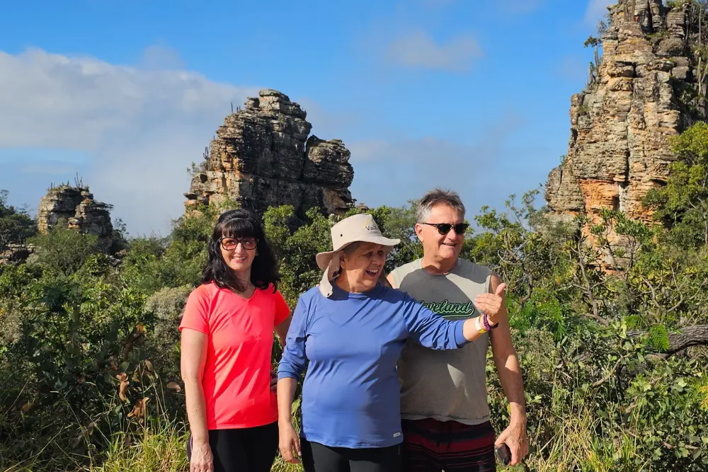 Depois, é hora de mergulhar nas cachoeiras mais cristalinas de Minas Gerais! Vamos seguir para o Complexo do Ouro, uma atração fascinante composta por três cachoeiras deslumbrantes. Cada uma delas possui características únicas, perfeita para contemplação, mergulho e relaxamento! A trilha completa é de aproximadamente 1,5 km ida e volta, nível iniciante e que vale completamente a pena quando contemplamos esses visuais inesquecíveis!