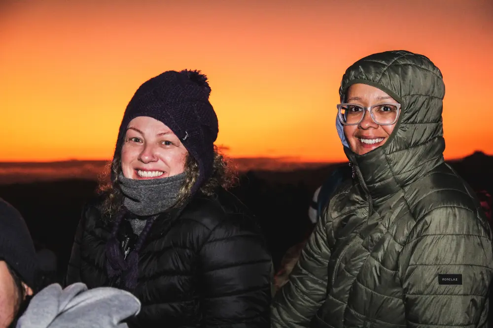 No terceiro dia, saímos às 4h da manhã para um trekking noturno sob a luz da lua e das estrelas, até o alto da Serra de Luminárias. Lá, contemplamos um nascer do sol inesquecível sobre as montanhas!