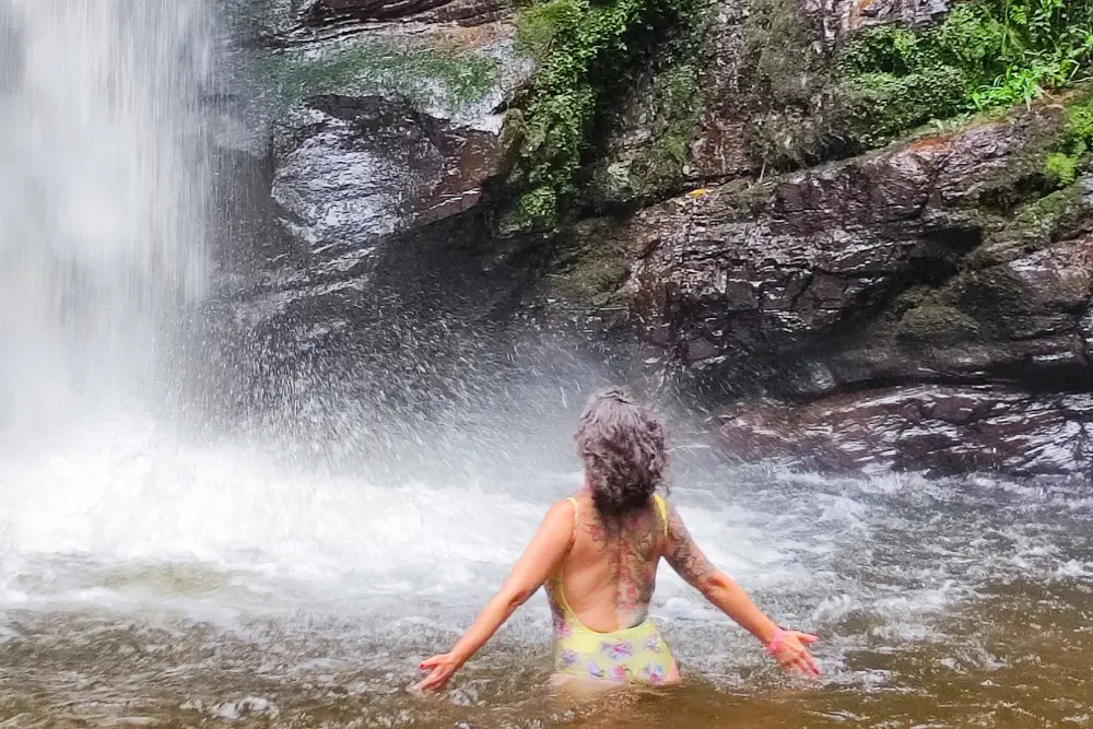 "Foi a primeira experiência, em passar o reveillon de uma forma diferente, literalmente mergulhada na natureza! Tomar banho de cachoeira, e a preparação emocional e espiritual para o novo ano, foram essenciais para mim. (E acredito que para outros também). Foi espetacular almoçar na floresta ouvindo o som maravilhoso das árvores e pássaros. Apesar da chuvinha, não atrapalhou a vibe que todos estavam sentindo naquele momento. Tem tudo para ser um roteiro muito procurado para as próximos reveillons! Eu simplesmente amei! Muito obrigada!"
